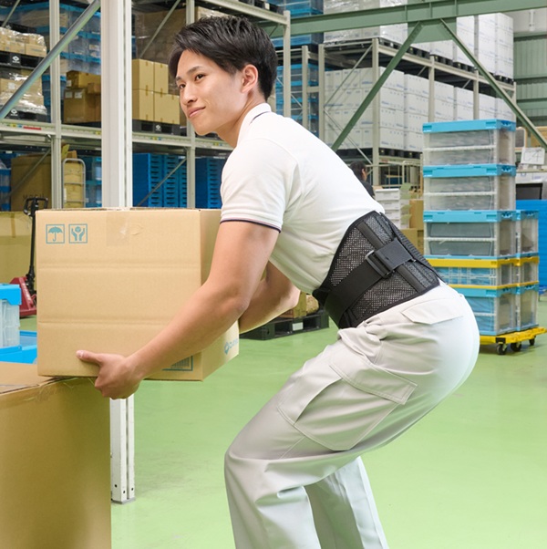 ●左右のベルトを軽く引くだけで本体背部が中心に寄り、腰をガッチリ固定します。