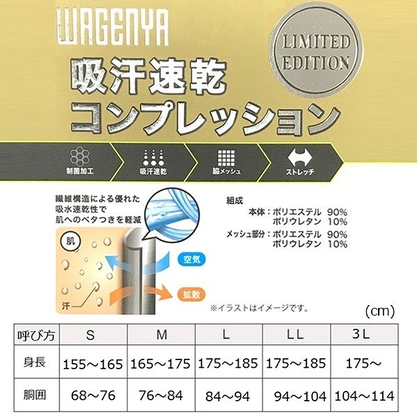 ●制菌加工・吸汗速乾・脇メッシュ・ストレッチ
