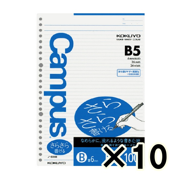 • (ケース販売)コクヨ キャンパス ルーズリーフ さらさらかけるルーズリーフ B5 B罫・6mm 100枚 10冊