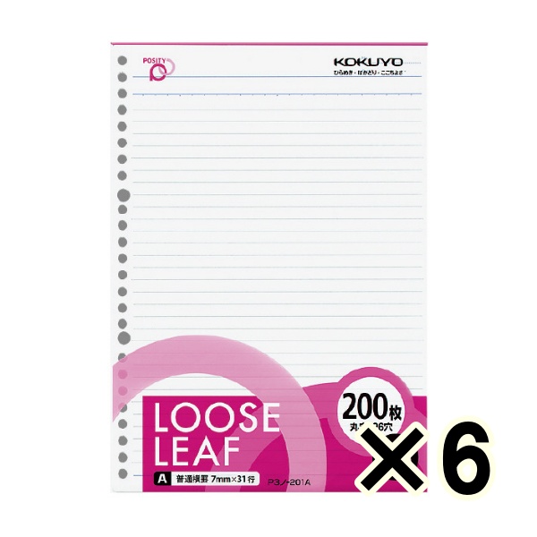 • (ケース販売)コクヨ ポジティ ルーズリーフ B5 A罫・7mm 200枚 6冊