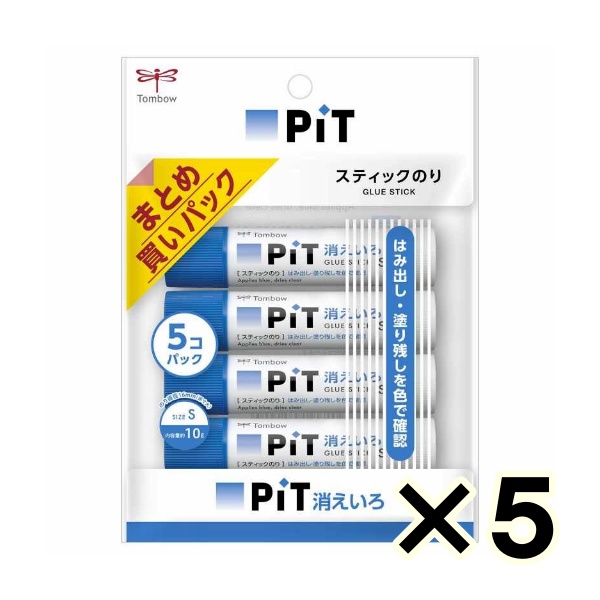 • (ケース販売)トンボ スティックのり 消えいろピットS 5本パック 5個(合計25本)