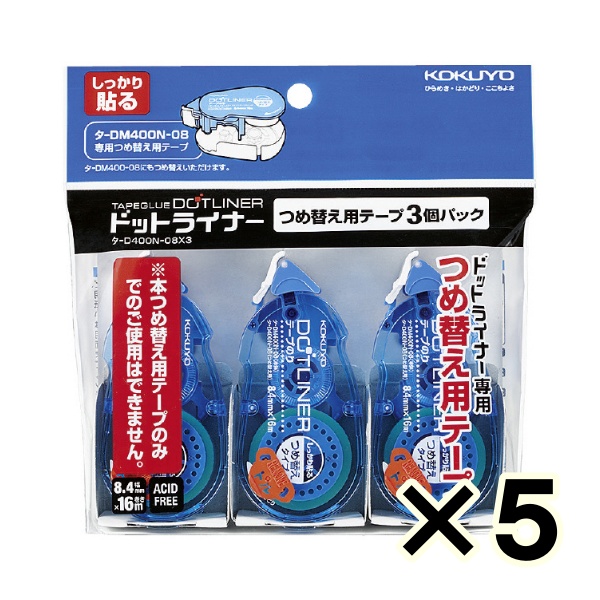 • (ケース販売)コクヨ ドットライナー テープのりつめ替え用テープ 強粘着 タ-DM400-08用 8.4mm×16m 3個パック 5個(合計15個)