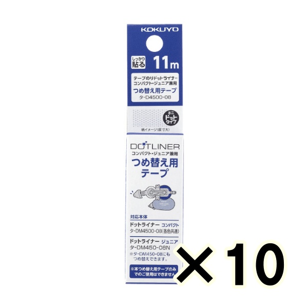 • (ケース販売)コクヨ ドットライナーコンパクト テープのりつめ替え用テープ 強粘着 タ-DM4500-08N、タ-DM450-08N用 8.4mm×11m 10個