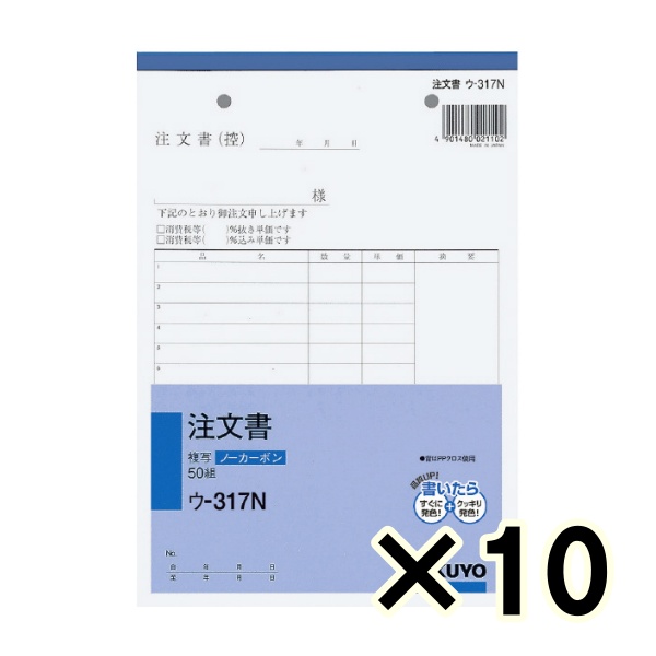 • (ケース販売)コクヨ ノーカーボン複写簿 注文書 ウ-317 A5タテ型 16行 50組 10冊