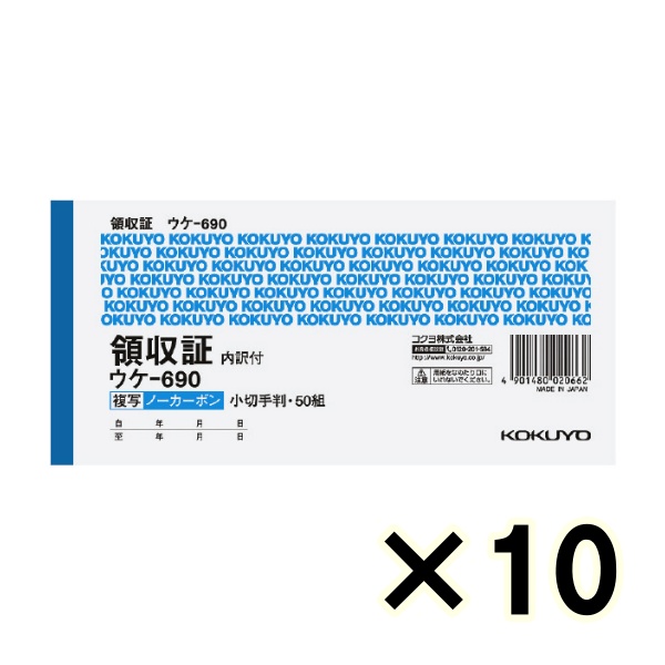 • (ケース販売)コクヨ ノーカーボン複写 領収証 ウケ-690 小切手判ヨコ型 ヨコ書 50組 10冊