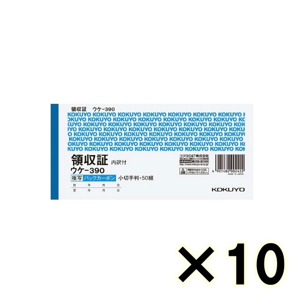 • (ケース販売)コクヨ バックカーボン複写 領収証 ウケ-390 スポットタイプ 小切手判ヨコ型 ヨコ書 50組 10冊