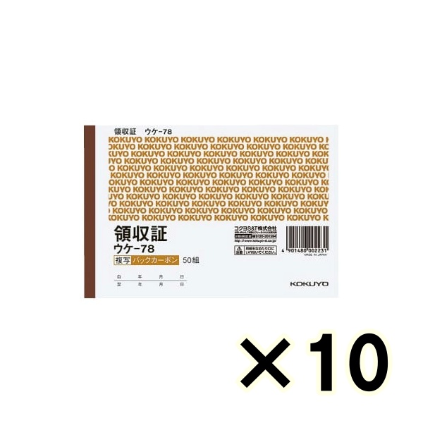 • (ケース販売)コクヨ バックカーボン複写 領収証 ウケ-78 A6ヨコ型 ヨコ書 50組 10冊