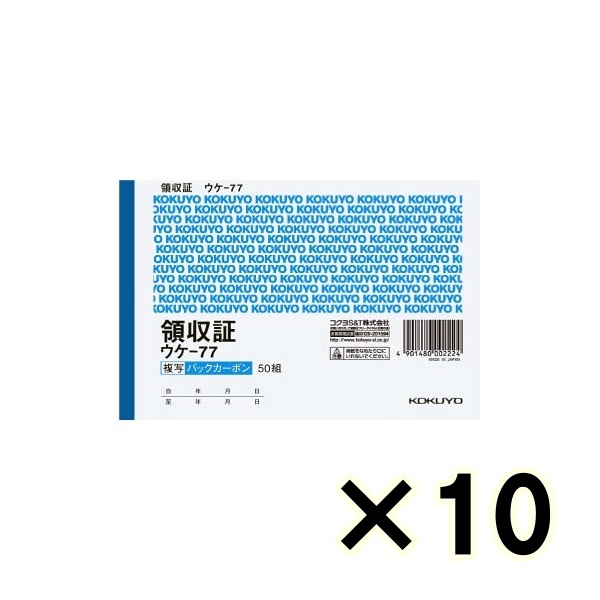 • (ケース販売)コクヨ バックカーボン複写 領収証 ウケ-77 A6ヨコ型 ヨコ書 50組 10冊