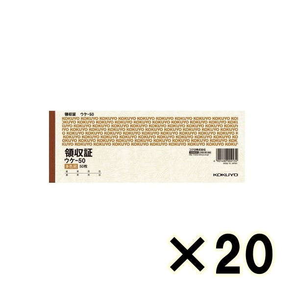 • (ケース販売)コクヨ 領収証 ウケ-50 小切手判ヨコ型 ヨコ書 三色刷り 50枚 20冊