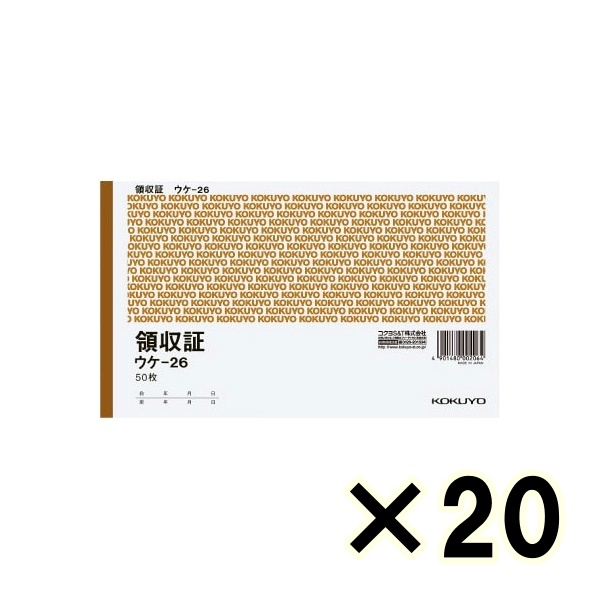 • (ケース販売)コクヨ 領収証 ウケ-26 B6ヨコ型 ヨコ書 50枚 20冊