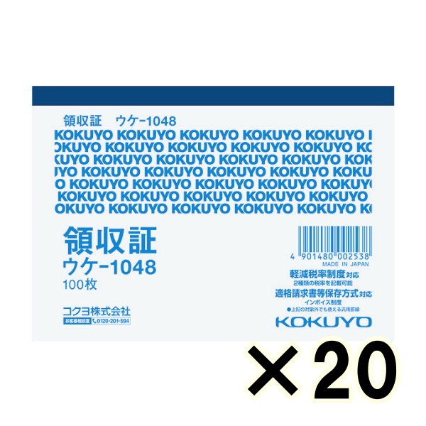 • (ケース販売)コクヨ 領収証 ウケ-1048 B7ヨコ型 ヨコ書き 100枚 20冊