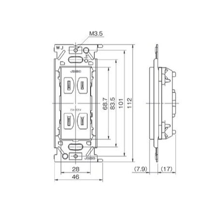 神保電機 接地ダブル コンセント ピュアホワイト JEC-BN-55G PW