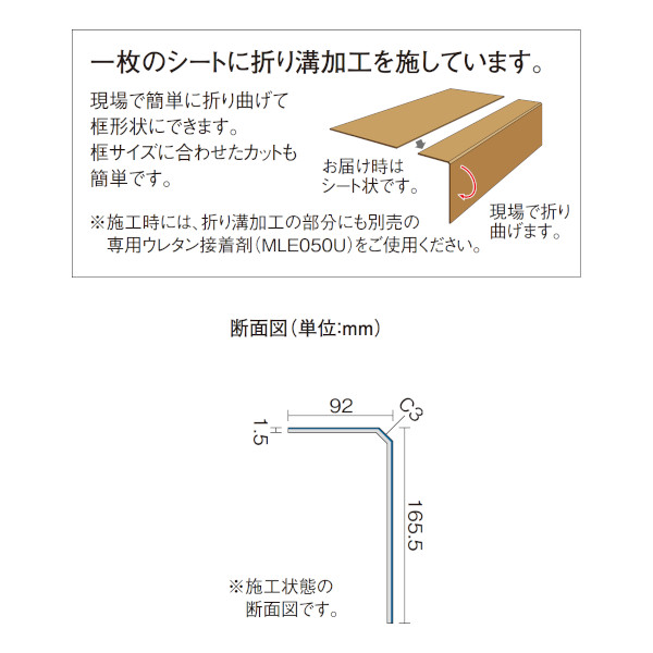 ※折り溝加工には専用ウレタン接着剤(MLE050U)を必ずご使用ください。