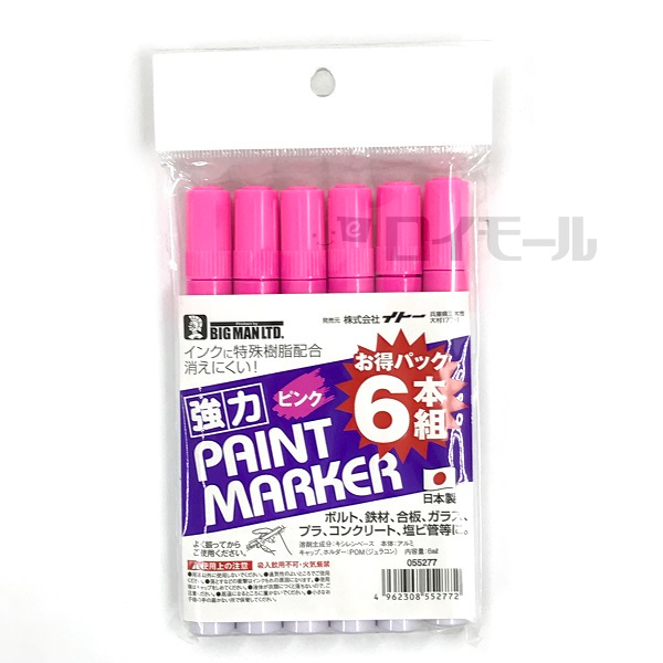 ●「ビックマン 強力ペイントマーカー 中字丸芯 ピンク」の6本組です。