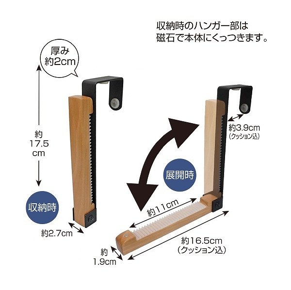 ●引っ掛けるだけでドアや折れ戸を有効活用。
