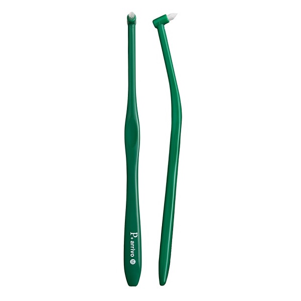 ●プラークの残りやすい臼歯部遠心や舌側・口蓋側にもとどきやすいデザインのポイントハブラシ。