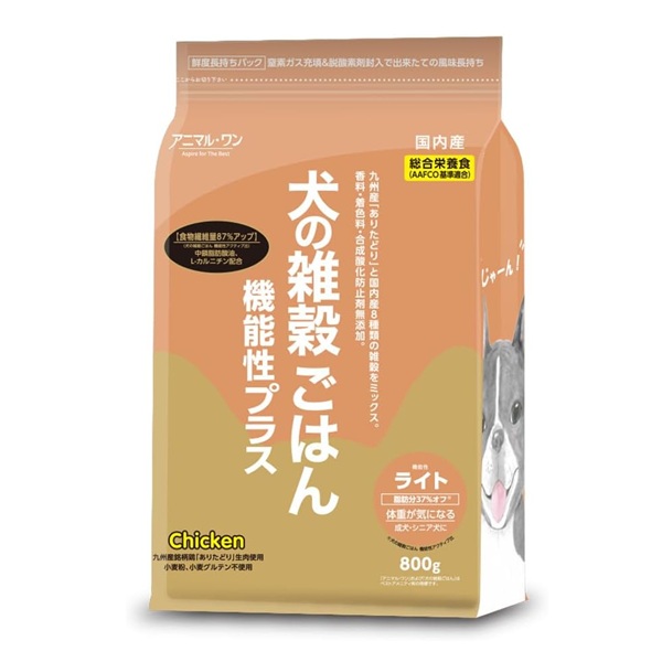 ●小麦粉・小麦グルテン不使用で食物アレルギーに配慮、鶏の生肉を配合した犬用ドライフード。脂肪分をオフ、食物繊維をアップしました(犬の雑穀ごはん 機能性アクティブ比)