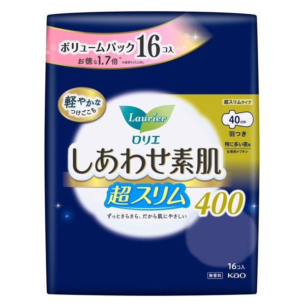 ロリエ しあわせ素肌 400 超スリム 特に多い夜用 羽つき 40cm 16コ入