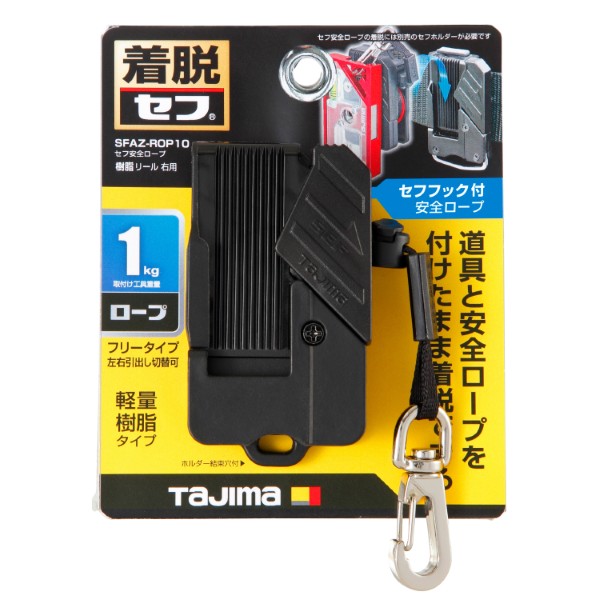 ●表はセフホルダー、裏はセフフック、細かい作業なしで安全ロープごと工具交換ができます。