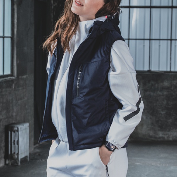 ●ストレッチ性と防水性・防風性・保温性を兼ね備える、スポーティなルックスの多機能軽防寒ウェア。