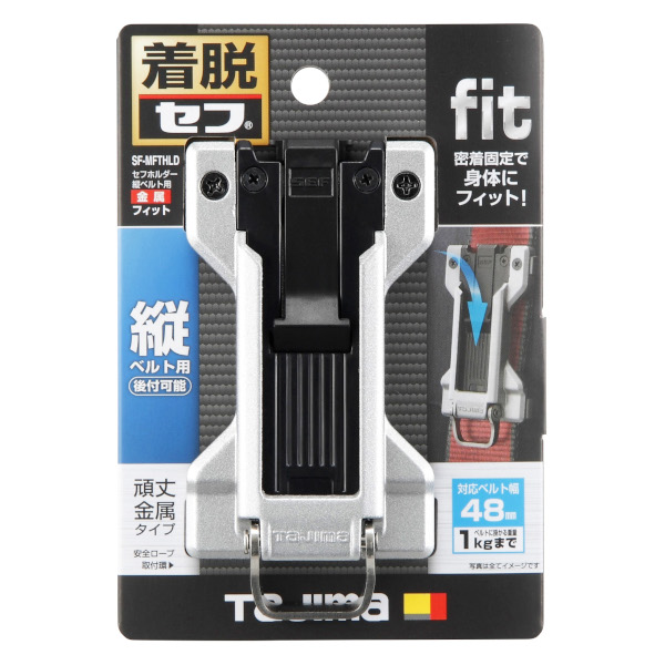●ベルトが二重になる長さ調整部にも取付可能で、ベルトに後から装着できるネジ取付式です。