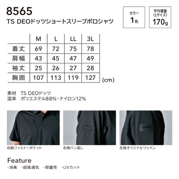 TS DESIGN 8565 TS DEOドッツショートスリーブポロシャツ ブラック LL