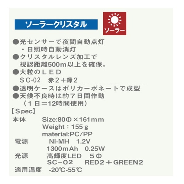 ソーラークリスタル 赤/緑点滅 (NETIS)