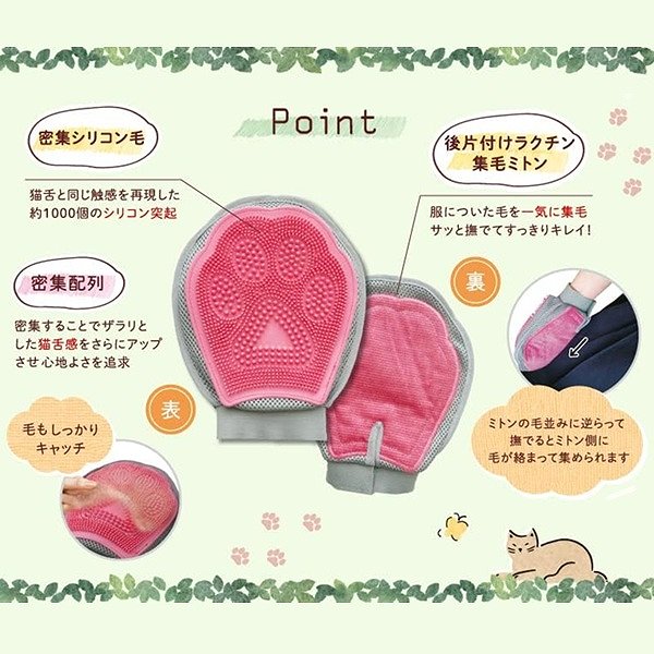 ●裏面は服についた毛をサッと撫でて後片付けができる集毛ミトン。