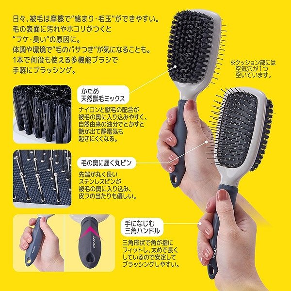 ●毛の奥に届く丸ピン。●手になじむ三角ハンドル。