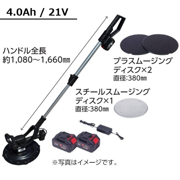 本機×1、伸縮ハンドル×1、バッテリー×2、充電器×1、スチールディスク×1、プラディスク×2
