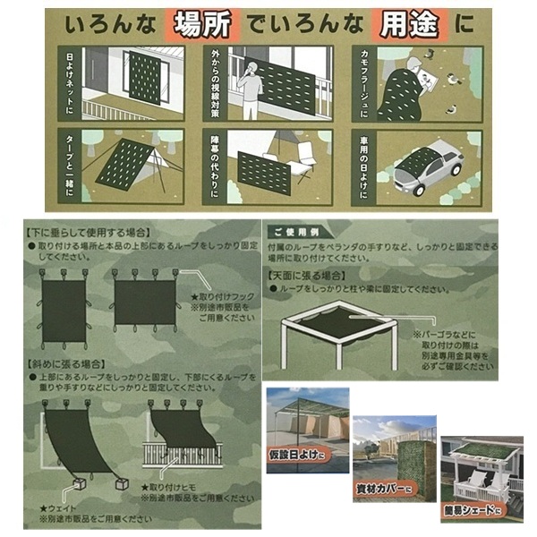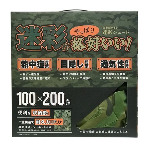 遮光 通気 目隠し 迷彩模様で遮る 日差し・視線 風が程よく抜け 熱がこもらない