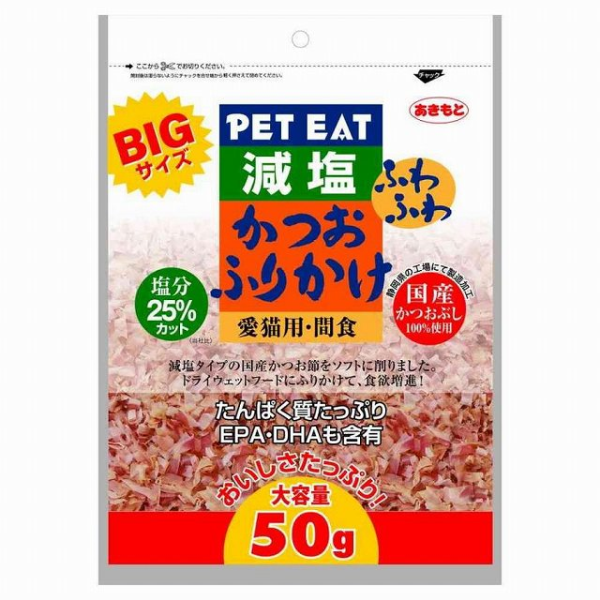 ●猫ちゃんの健康に配慮した減塩タイプのかつお節です。
