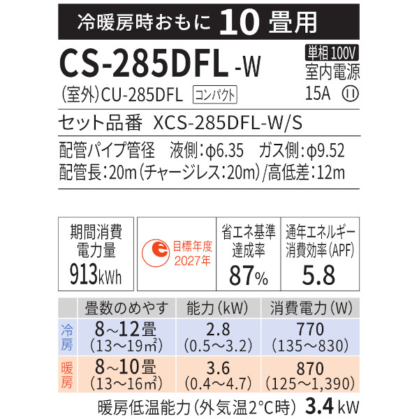 サイズ:室内機(約)幅780×高さ290×奥行229mm 室外機(約)幅655×高さ539×奥行275mm