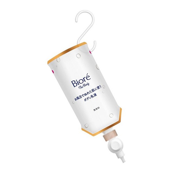 ●お風呂の中でつりさげて、ぬれた肌に使って、肌の角層まで浸透&密着。ベタつかず、肌すべすべタイプのボディミルク。