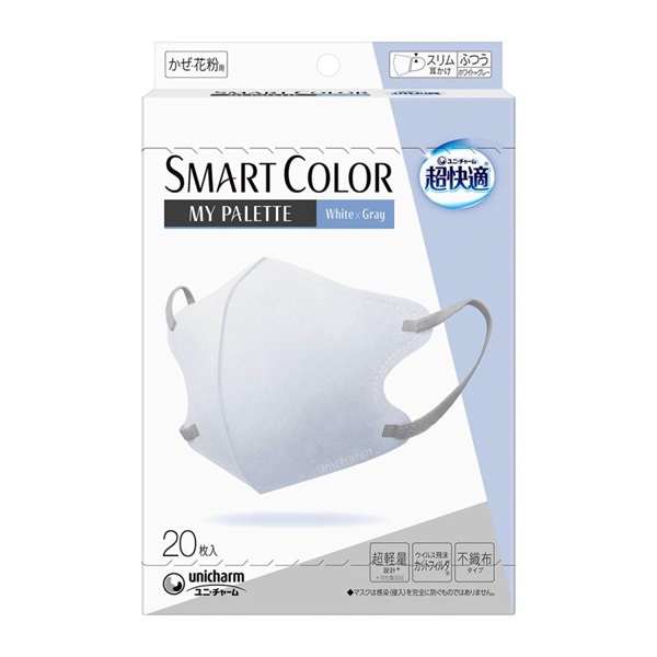 超快適マスク SMART COLOR MY PALETTE (マイパレット) ふつう ホワイト×グレー 20枚