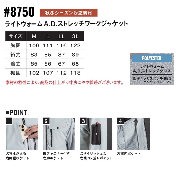 ●防風、透湿、保温、軽量、堅牢性、ストレッチ・・・。全ての機能を網羅するワークウェア。