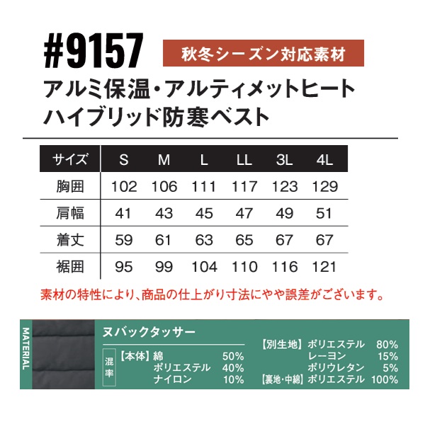 • アイズフロンティア 9157 アルミ保温・アルティメットヒート ハイブリッド防寒ベスト ジェイディーカーキ 3L