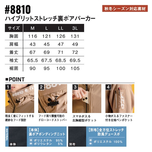 ●フード内には中綿を使用し更なる保温効果。