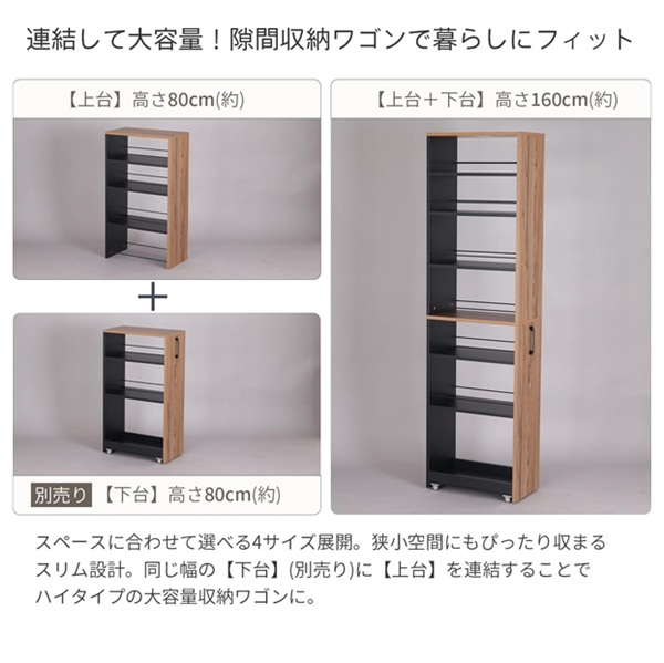 ●別売りの【ベース】収納ワゴンと【上棚】を重ねてハイタイプとして使用して頂けます。