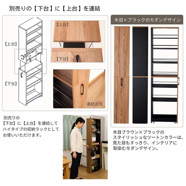 ●別売りの【ベース】収納ワゴンと【上棚】を重ねてハイタイプとして使用して頂けます