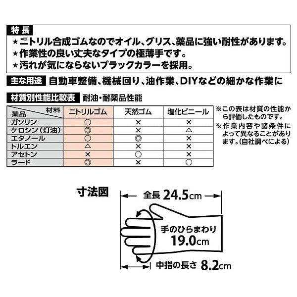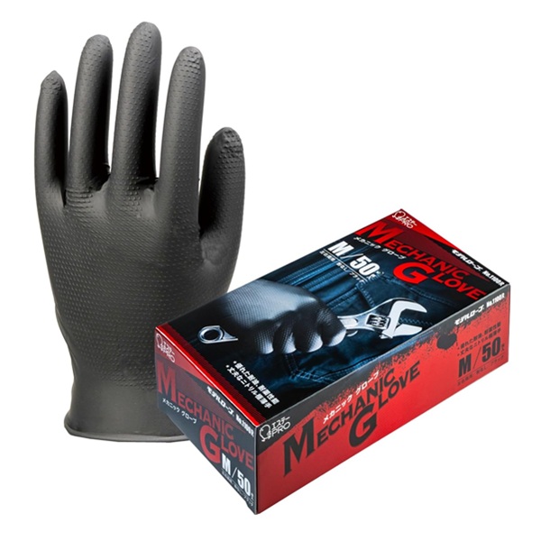 エステーPRO モデルローブ No.1100R-M メカニックグローブ 極薄手 M 50枚入 ブラック