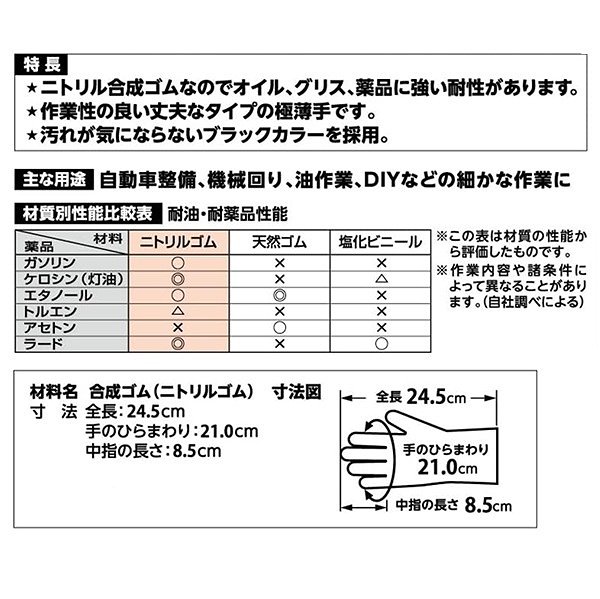 エステーPRO モデルローブ No.1100R-L メカニックグローブ 極薄手 L 50枚入 ブラック