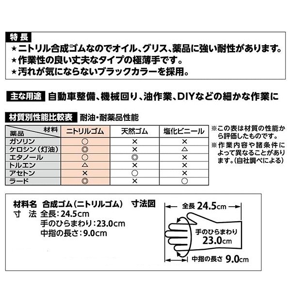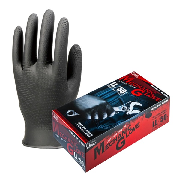 エステーPRO モデルローブ No.1100R-LL メカニックグローブ 極薄手 LL 50枚入 ブラック