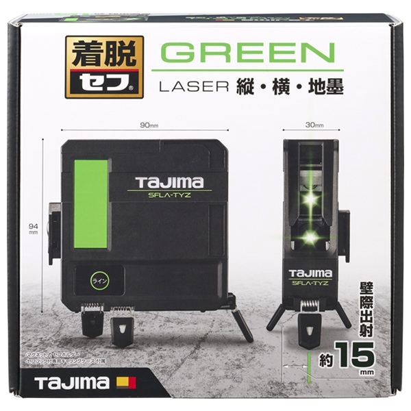 ●薄型形状のため壁際約15mmの位置から縦ラインを出射できます。