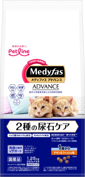• (ケース販売)メディファスアドバンス 2種の尿石ケア 1歳から チキン&フィッシュ味 1.25kg(250g×5) 6個