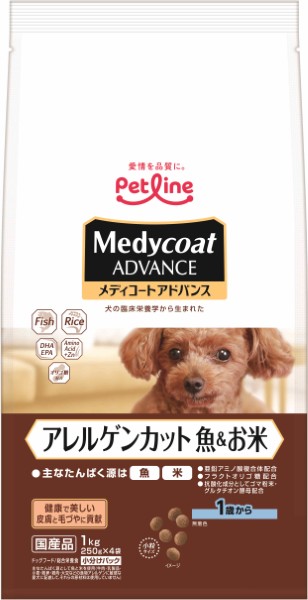 • (ケース販売)メディコートアドバンス アレルゲンカット 魚&お米 1歳から 1kg(250g×4) 6個