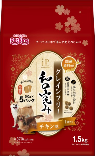 • (ケース販売)JPスタイル 和の究み 犬用 小粒 グレインフリー チキン味 1歳から 1.5kg(300g×5) 4個