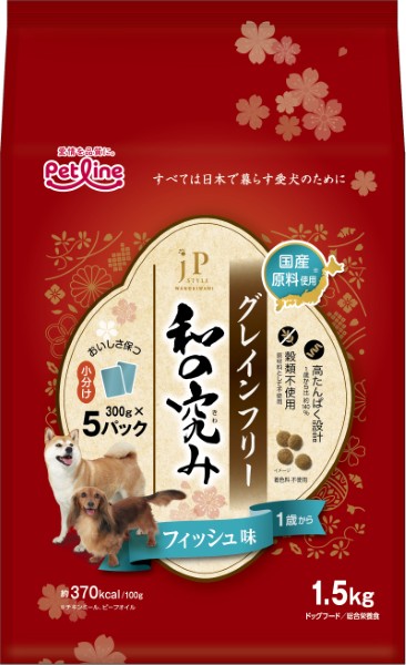 • (ケース販売)JPスタイル 和の究み 犬用 小粒 グレインフリー フィッシュ味 1歳から 1.5kg(300g×5) 4個