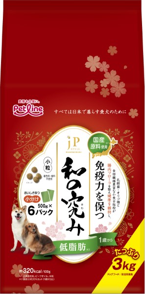 • (ケース販売)JPスタイル 和の究み 犬用 小粒 低脂肪 1歳から 3kg(500g×6) 4個
