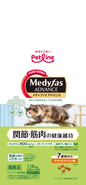 • (ケース販売)メディファスアドバンス 関節・筋肉の健康維持 7歳頃から チキン&フィッシュ味 1.15kg(230g×5) 6個
